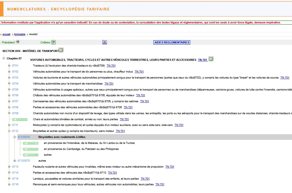 2.1 Recherche de nomenclatures douanières
