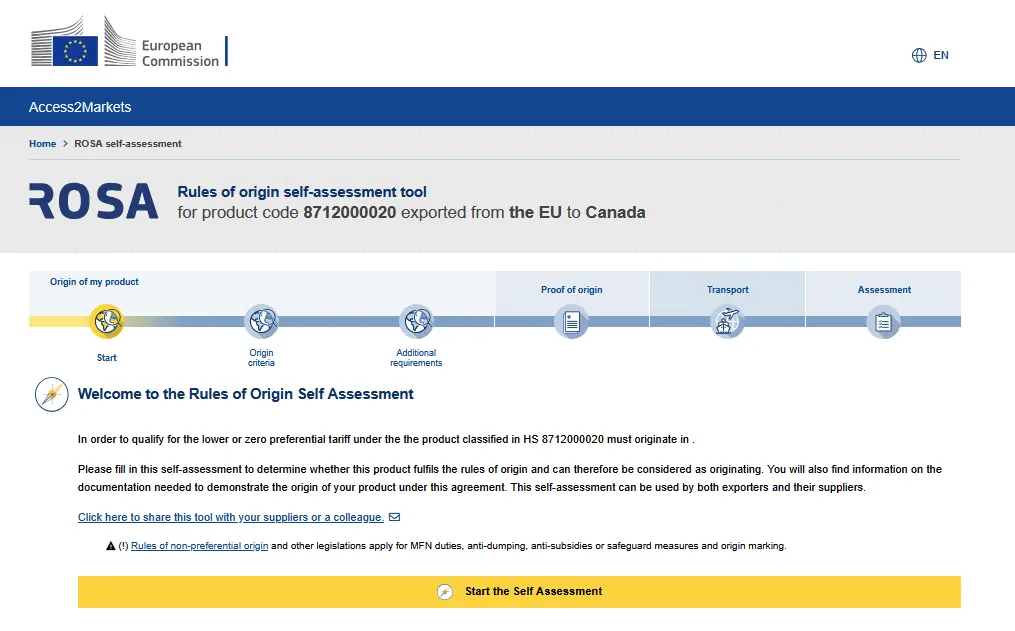 - Consultez les informations : Droits de douane, taxes, réglementations, règles d’origine (outil d’auto évaluation de origine preferentielle de ses produits avec ROSA), etc.